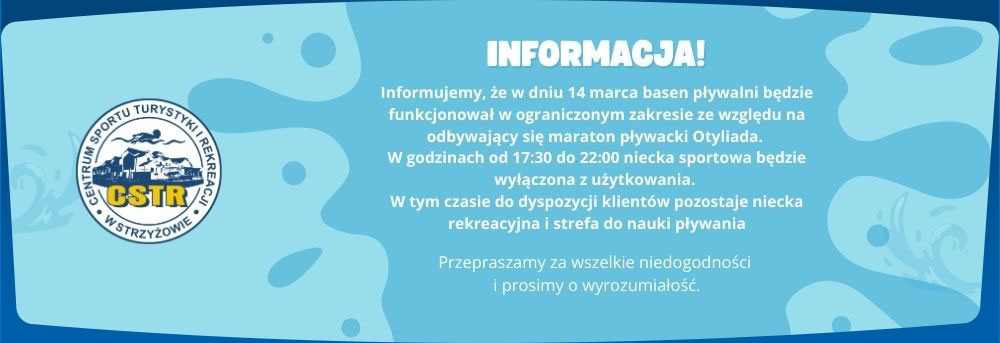 informujemy, że od 20 września 2025 r. nasz Park Wodny będzie czynny w nowych godzinach:
